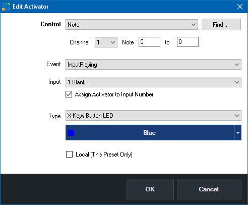 Turn X-Keys button blue when Input 1 is playing.