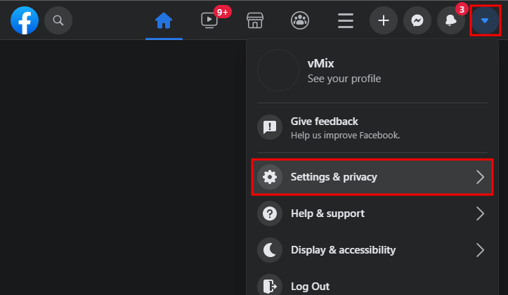 Click the arrow at the top right hand corner and select Settings & Privacy and then choose Settings.