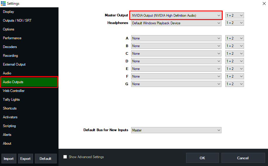 How to configure vMix to send Audio out to your Fullscreen Output TV or Output Source